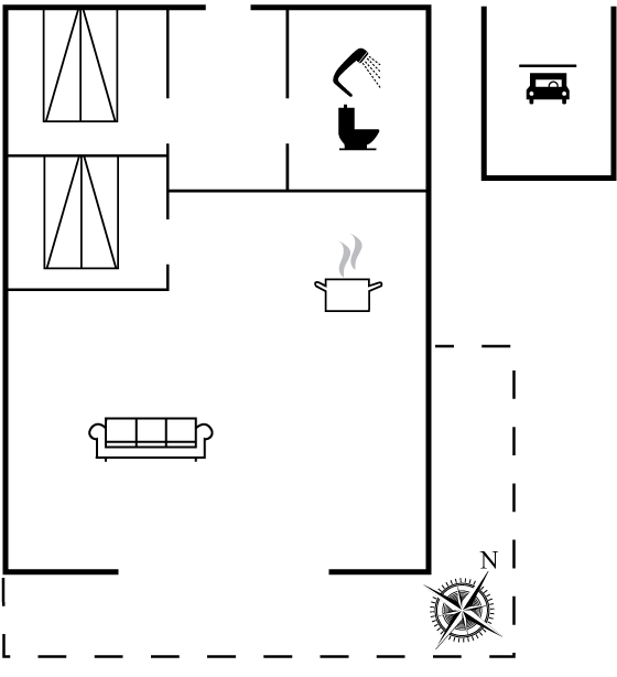 Das Haus ist hell und freundlich eingerichtet mit zwei guten Schlafzimmern, einem Badezimmer sowie einer offenen Küche in Verbindung mit dem Ess- und Wohnzimmer. Im Wohnzimmer gibt es eine gemütliche Alkove, in der die Kinder gerne übernachten werden. Hier gibt es auch einen Ausgang zu einer schönen Holzterrasse mit komfortablen Gartenmöbeln und Grill.