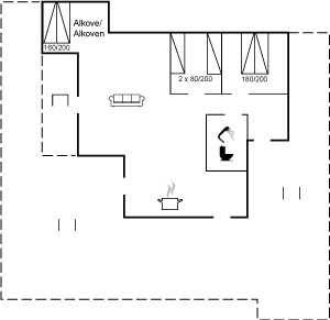 Die Innenräume des Hauses sind offen, hell und modern eingerichtet. Dank der hellen Verkleidungen, der großen Fensterfronten und der bis unter das Dach reichenden Decke in allen Räumen ist das Raumgefühl luftig und angenehm. Die moderne Küche grenzt offen an Essplatz und Wohnzimmer an. Es gibt 2 Schlafzimmer mit je 2 Schlafplätzen sowie ein großer Alkoven mit 2 Schlafplätzen, die sich auch zum Entspannen hervorragend eignet. Das Badezimmer ist mit Fußbodenheizung, Duschnische mit Regendusche und einem direkten Zugang zur Terrasse sowie zu den Außenduschen ausgestattet. Das Haus ist funktional und besteht rundum aus hochwertigen Materialien.
