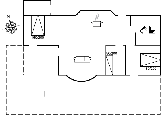 Küche, Essbereich und Wohnzimmer sind offen miteinander verbunden und bilden zusammen mit der großen, nach Süden ausgerichteten Terrasse die natürlichen Treffpunkte für das gemütliche Beisammensein mit Familie und Freunden. Ein Teil der Terrasse ist überdacht, sodass du dich im Schatten aufhalten und die langen, hellen Sommerabende genießen kannst. Im gesamten Haus sorgen Decken bis zum First und guter Lichteinfall für eine einladende Atmosphäre.