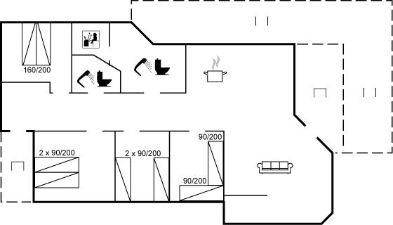 Das Haus verfügt über 4 gute Schlafzimmer mit jeweils 2 Schlafplätzen sowie 2 Badezimmer mit Duschnische und Fußbodenheizung. In einem der Badezimmer gibt es außerdem eine Badewanne, eine Sauna, eine Waschmaschine und einen Wäschtetrockner.