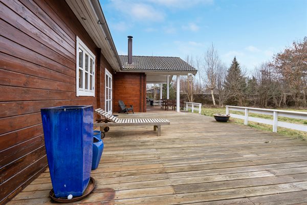 Auf der großen Holzterrasse könnt ihr entspannen und das schöne Wetter genießen. Der überdachte Teil der Terrasse bietet Schatten und eignet sich perfekt, um die späten Abendstunden draußen zu verbringen.