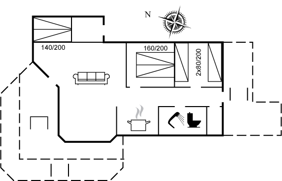 Vom gemütlichen Wohn-Essbereich, der offen mit dem Wohnzimmer verbunden ist, gelangst du direkt in den gepflegten Garten und auf die teilweise überdachte Terrasse. Das Haus ist mit 2 Schlafzimmern eingerichtet: 1 mit Doppelbett und 1 mit 2 Einzelbetten. Im Wohnzimmer gibt es einen gemütlichen Alkoven mit 2 weiteren Schlafplätzen. Das Badezimmer verfügt über Duschnische, Fußbodenheizung und Waschmaschine.