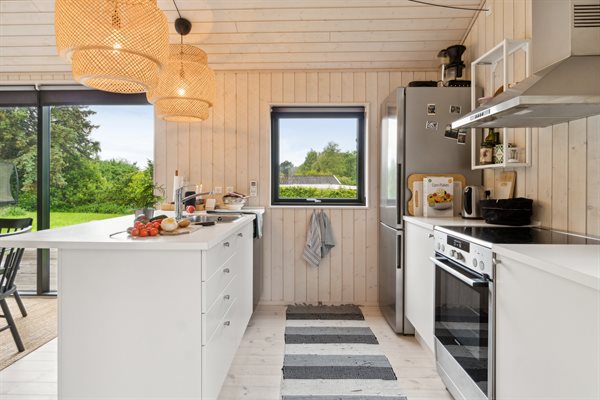Dieses moderne und schöne Ferienhaus aus dem Jahr 2017 liegt in einer ruhigen Ferienhaussiedlung am Ende einer Sackgasse. Das Haus befindet sich direkt an offenen Feldern in ländlicher und naturschöner Umgebung, nur 350 Meter von einem feinen kinderfreundlichen Sandstrand mit Badebrücke entfernt.