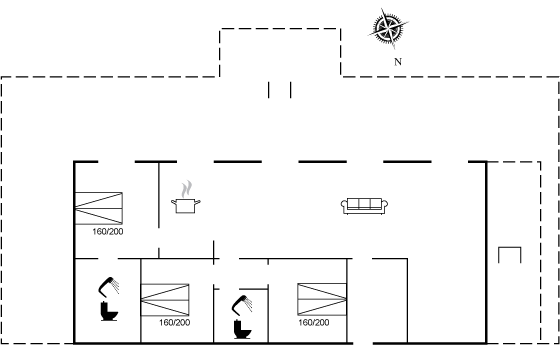 Die Raumaufteilung eignet sich gut für Familien und Paare, die viel Platz wünschen und sowohl die gemeinsame Zeit als auch die Privatsphäre schätzen. Das Haus ist sinnvoll aufgeteilt mit Schlafbereichen und Badezimmern, sodass du ohne Probleme mit mehreren Personen unter einem Dach wohnen kannst.