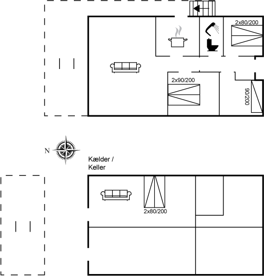 Das Ferienhaus hat zwei Etagen – im ersten Stock gibt es eine große Wohnküche mit Zugang zur großen Terrasse – und im Untergeschoss ein Schlafzimmer mit eigenem Badezimmer. Fantastische Lage – in der Nähe vieler Ausflugsmöglichkeiten, sowohl in der Natur als auch in den Badeorten Nordseelands und in Gilleleje mit frischem Fisch, Restaurants und Geschäften.