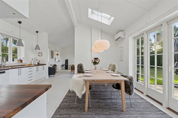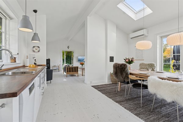 Gönn dir eine wohlverdiente Pause vom Alltag und genieße die Ferien in diesem stilvollen, hellen Haus in der Nähe der Kattegatküste. Das Haus bietet eine elegante und ruhige Atmosphäre, geschaffen durch die hohen Decken, die geschmackvolle Einrichtung und die großen Fensterfronten, die das Tageslicht hereinfluten lassen. Hier findest du Raum, um zur Ruhe zu kommen, neue Energie zu tanken und wertvolle Zeit mit deinen Liebsten zu verbringen.