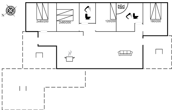 Dieses neue Ferienhaus von 2019 besticht dank großer Fensterfronten und hohen Decken in allen Räumen mit einem hellen und luftigen Raumgefühl. Das Haus wurde aus hochwertigen Materialien erbaut und im modernen Stil eingerichtet. Das Herzstück des Hauses ist der große offene Wohnbereich, der Küche, Essecke und Wohnzimmer umfasst. Es gibt 4 Schlafzimmer und 2 Badezimmer mit Fußbodenheizung und Duschnische. An eines der Badezimmer grenzt außerdem eine Sauna an. Auch Außenduschen sind vorhanden.
