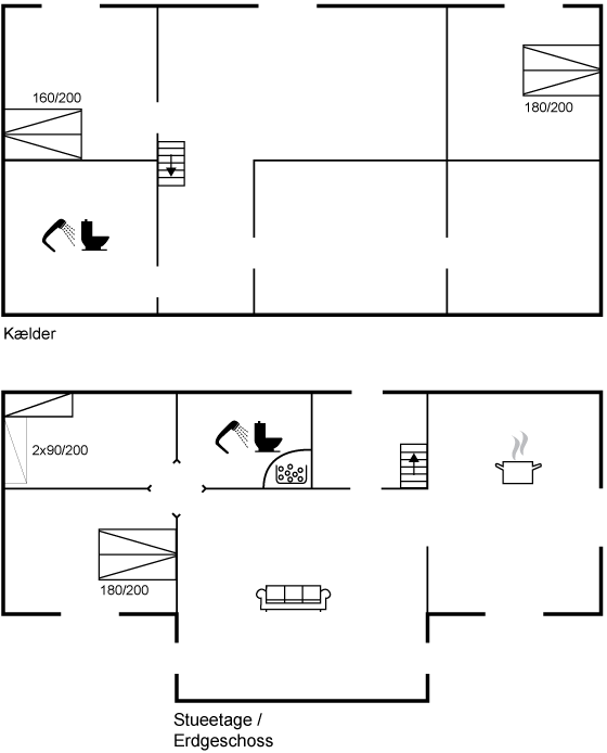 Großes und geräumiges Ferienhaus für die große Familie. Das Ferienhaus ist in zwei Etagen gebaut und von großen Terrassenflächen und einem schönen Garten umgeben. Es gibt 4 Schlafzimmer im Haus - 2 auf jeder Etage - sowie auf jeder Etage ein Badezimmer, eines davon mit Badewanne.