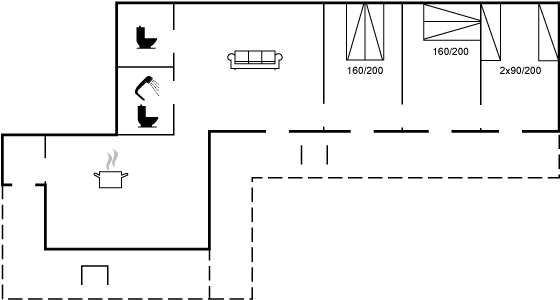 Helle Holzböden von guter Qualität, weiße Wände und weiße Decken schaffen ein helles und einladendes Interieur, in dem man schnell das Sommergefühl spürt. Modern und schön eingerichtet, lädt die große Küche/Essbereich zu gemütlichen Momenten ein - sowohl beim Kochen in der gut ausgestatteten Küche als auch beim Essen. Im Wohnzimmer kann man sich auf dem Sofa entspannen, wenn man fernsehen möchte und mit der Familie Zeit verbringt - sei es beim Kartenspielen, Brettspielen oder anderen Aktivitäten, die die Familie im Urlaub zusammenbringen. Das Badezimmer und die Gästetoilette sind notwendige Einrichtungen, aber auch hier wurde auf die Details geachtet. Die drei Schlafzimmer sind durch Verbindungstüren verbunden, die verschlossen werden können, sodass der Zugang zu jedem Schlafzimmer über die Terrassentüren erfolgen kann, die in jedem Schlafzimmer vorhanden sind.