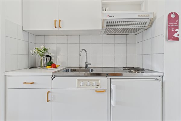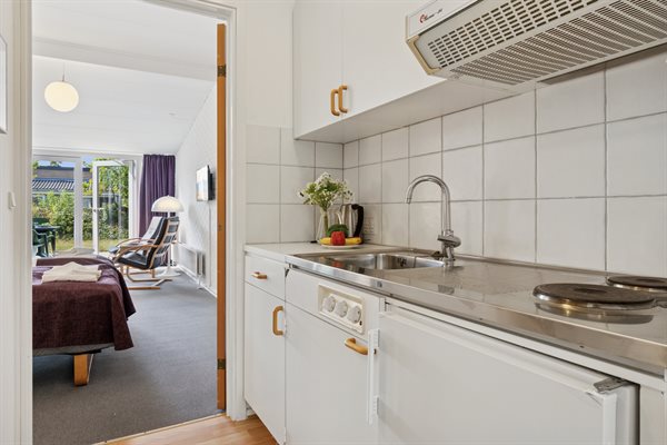 Die Wohnung verfügt über eine kleine Küche mit Kühlschrank und zwei Kochplatten, ein Wohnzimmer mit Zugang zu einer eigenen Terrasse, auf der du dein Mittagessen oder morgens eine Tasse Kaffee genießen kannst. Im Wohnzimmer findest du außerdem ein Doppelbett und eine Schlafcouch – die Wohnung ist daher für ein Paar oder eine kleine Familie mit einem Kind geeignet. Der Eingangsbereich, die Küche und der kleine Essbereich sind separat gelegen, sodass man sich gut in der Wohnung verteilen kann – perfekt, wenn du etwas Ruhe brauchst, ein gutes Buch lesen oder einfach entspannen und deinen Urlaub genießen möchtest.