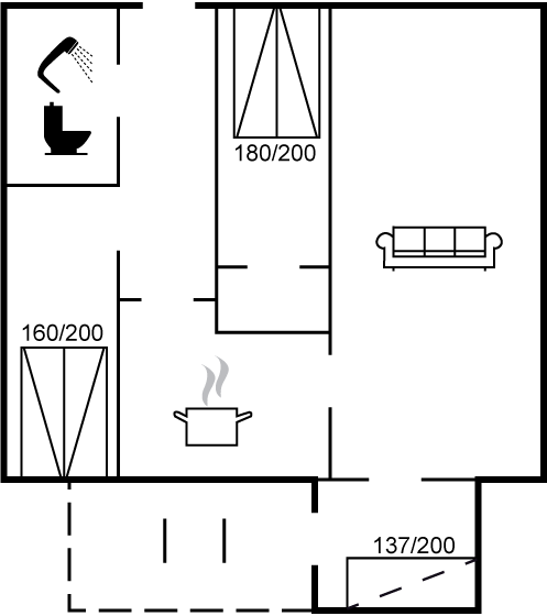 | Wasser 350 m | 5 Pers. | 100 m2 | 2 Schlafzimmer |