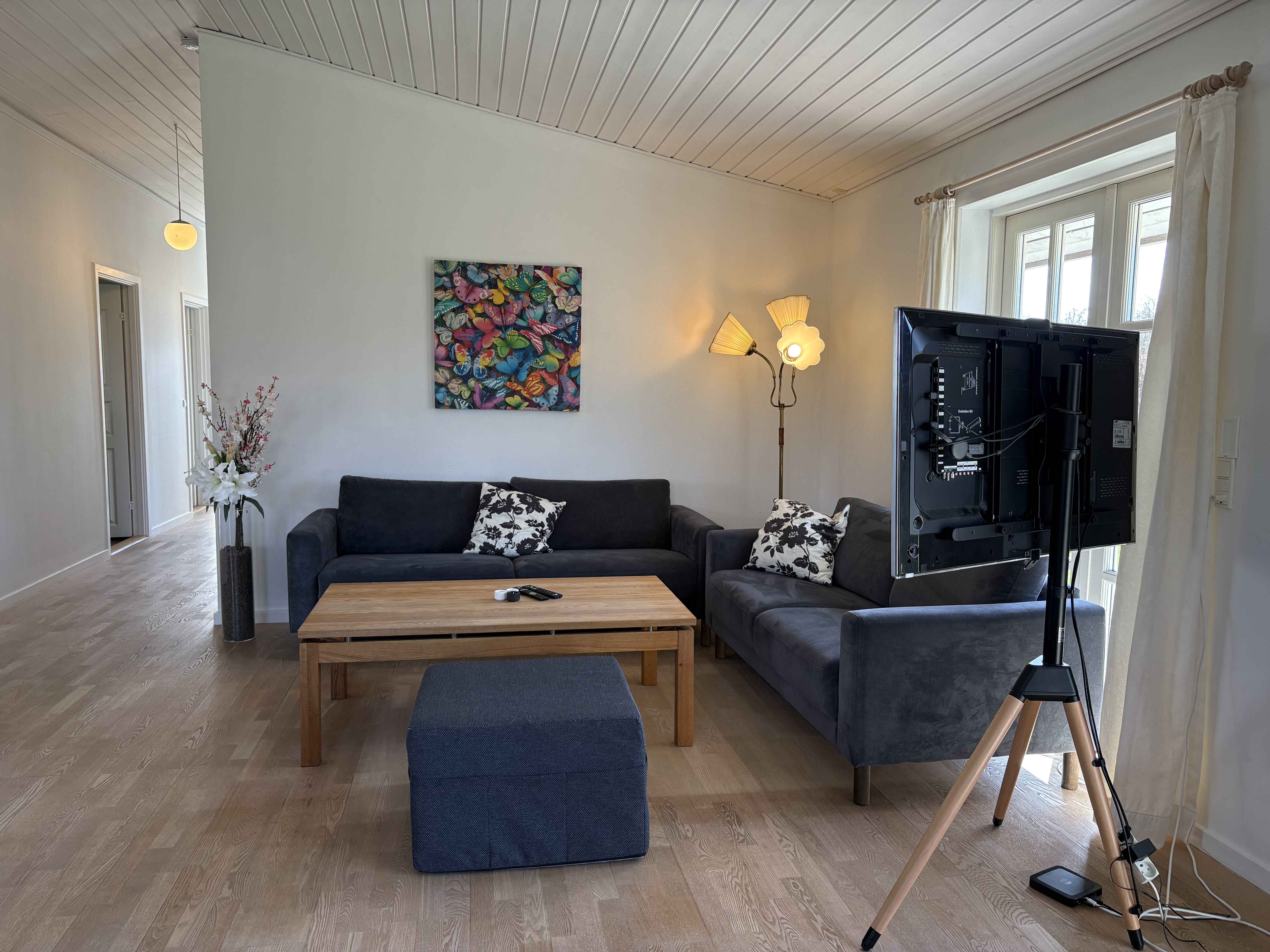 Nun, lassen Sie uns in das Haus selbst eintauchen. Mit drei gemütlichen Zimmern und Platz für sechs Personen gibt es reichlich Platz für die ganze Familie oder eine Gruppe von Freunden. Das geräumige Badezimmer bietet sowohl Komfort als auch praktische Einrichtungen, einschließlich einer kombinierten Waschmaschine. Und das große Wohnzimmer ist der perfekte Treffpunkt, an dem alle sich zu gemütlichen Momenten und lustigen Aktivitäten versammeln können. Vom Wohnzimmer aus führen Türen zur Terrasse, die sowohl Morgensonne als auch Abendsonne genießt, perfekt für entspannte Momente oder Mahlzeiten im Freien. Und wenn der Abend etwas kühl wird, fürchte dich nicht, denn das Haus verfügt über einen gemütlichen Kamin, der Wärme und Atmosphäre zu Ihrer Umgebung hinzufügt.