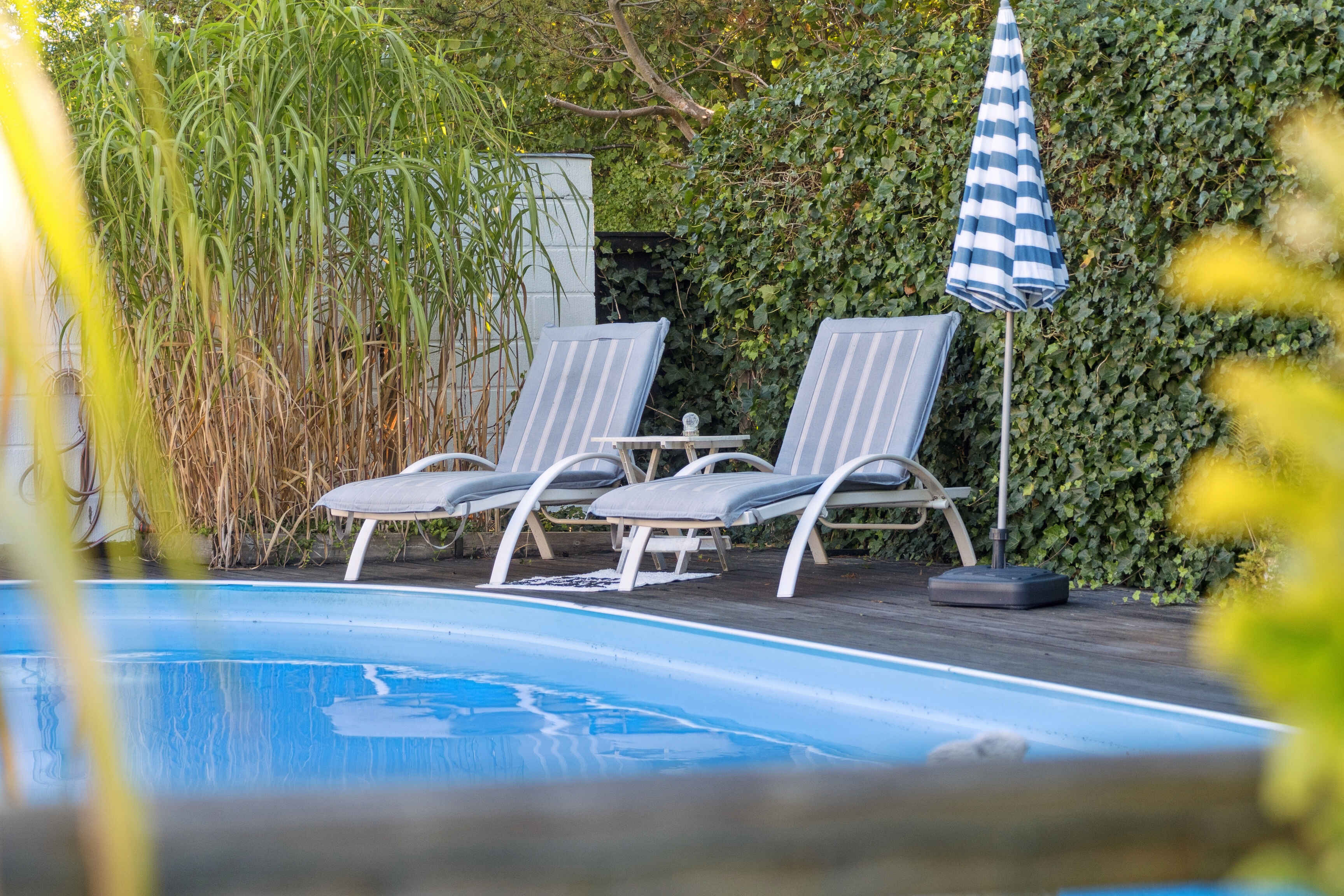Das Erste, was hier ins Auge fällt, ist der Pool. Umrahmt von einer schönen Holzterrasse und vollständig von den Nachbarn abgeschirmt, ist er das Herzstück des Urlaubs – ein Ort für erfrischende Schwimmzüge, entspannte Stunden auf der Sonnenliege und ungestörte Ruhe unter freiem Himmel.