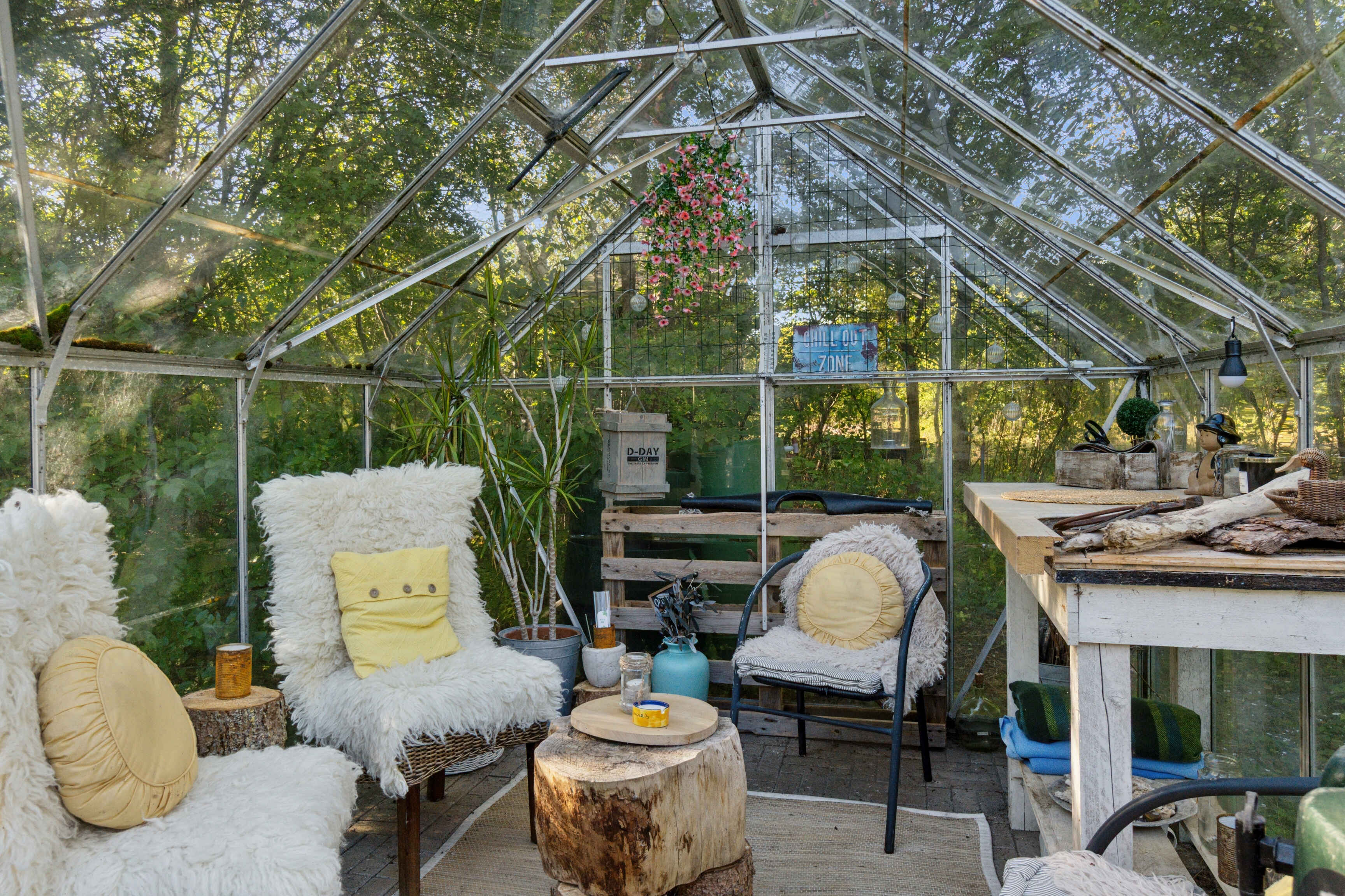 Draußen erwarten Sie zahlreiche Möglichkeiten. Die nordwestlich ausgerichtete, überdachte Terrasse mit Grill lädt zu gemütlichen Abenden mit gutem Essen und langen Gesprächen ein. Das Orangeriehaus schafft einen zusätzlichen Außenraum, eingerichtet für Behaglichkeit und mit der Möglichkeit, die Saison unabhängig vom Wetter zu verlängern.
