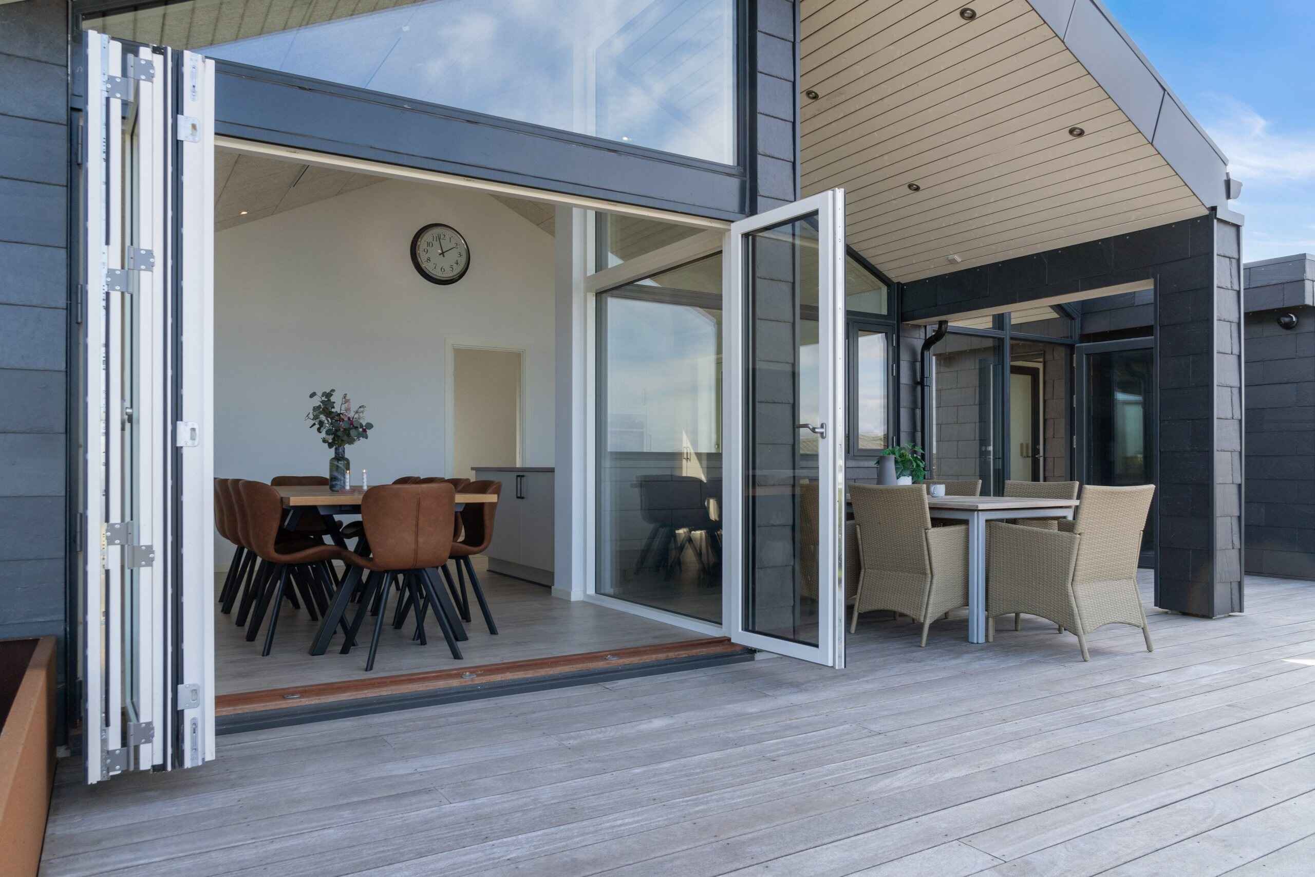 Dieses 120 m² große Ferienhaus aus dem Jahr 2023 liegt direkt am Wasser, wo der Ausblick Teil des Alltags ist. Das Meer ist das Erste, was man beim Betreten sieht, und große Fensterfronten bringen Licht und Küstenlandschaft ins Innere.