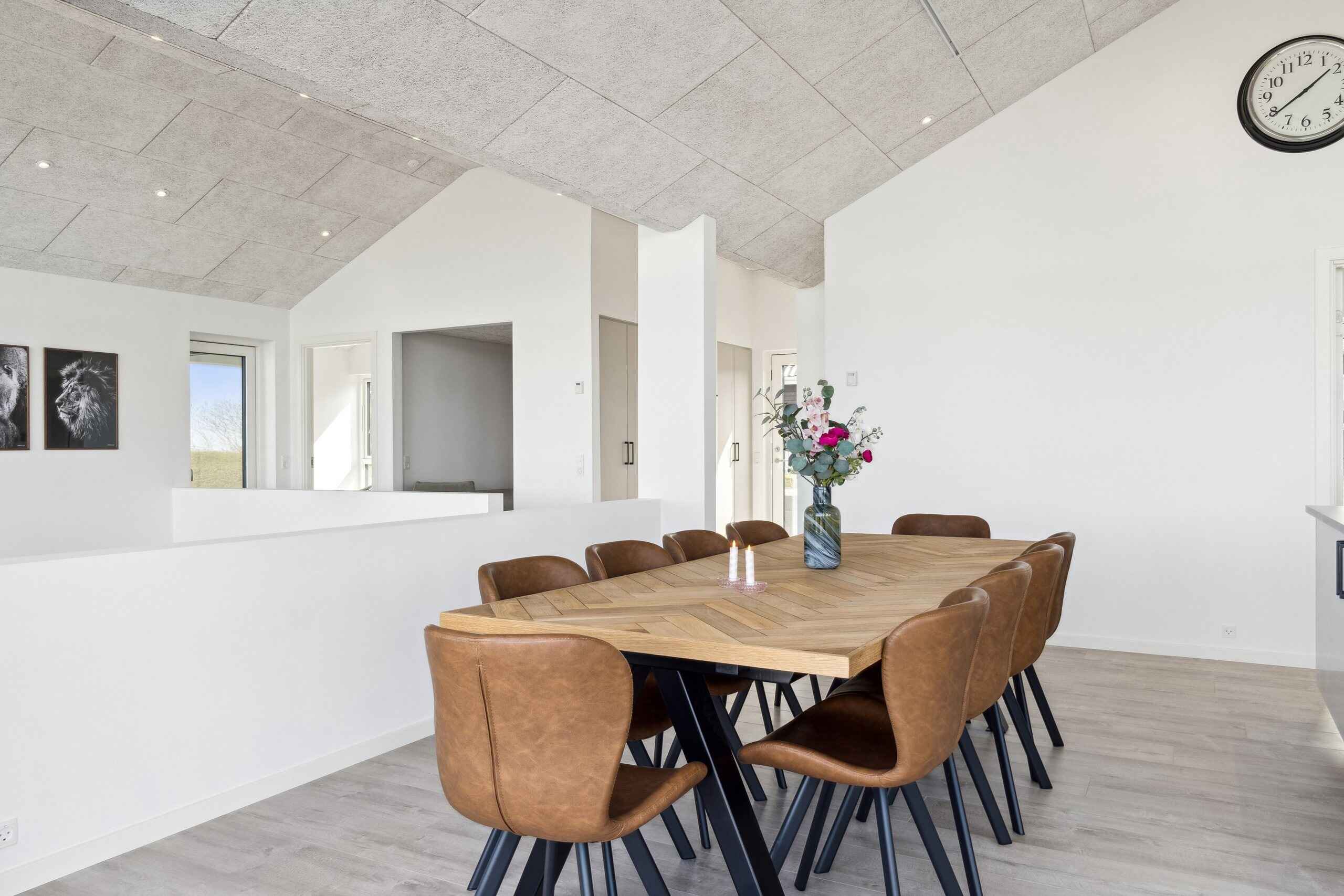 Die Einrichtung ist modern und funktional, mit drei Schlafzimmern und einem Schlafboden, der als zusätzlicher Wohn- oder Schlafbereich genutzt werden kann. Die offene Küche mit Essbereich bildet den natürlichen Treffpunkt des Hauses, mit viel Platz für gemeinsame Mahlzeiten und direktem Zugang zur Terrasse.
