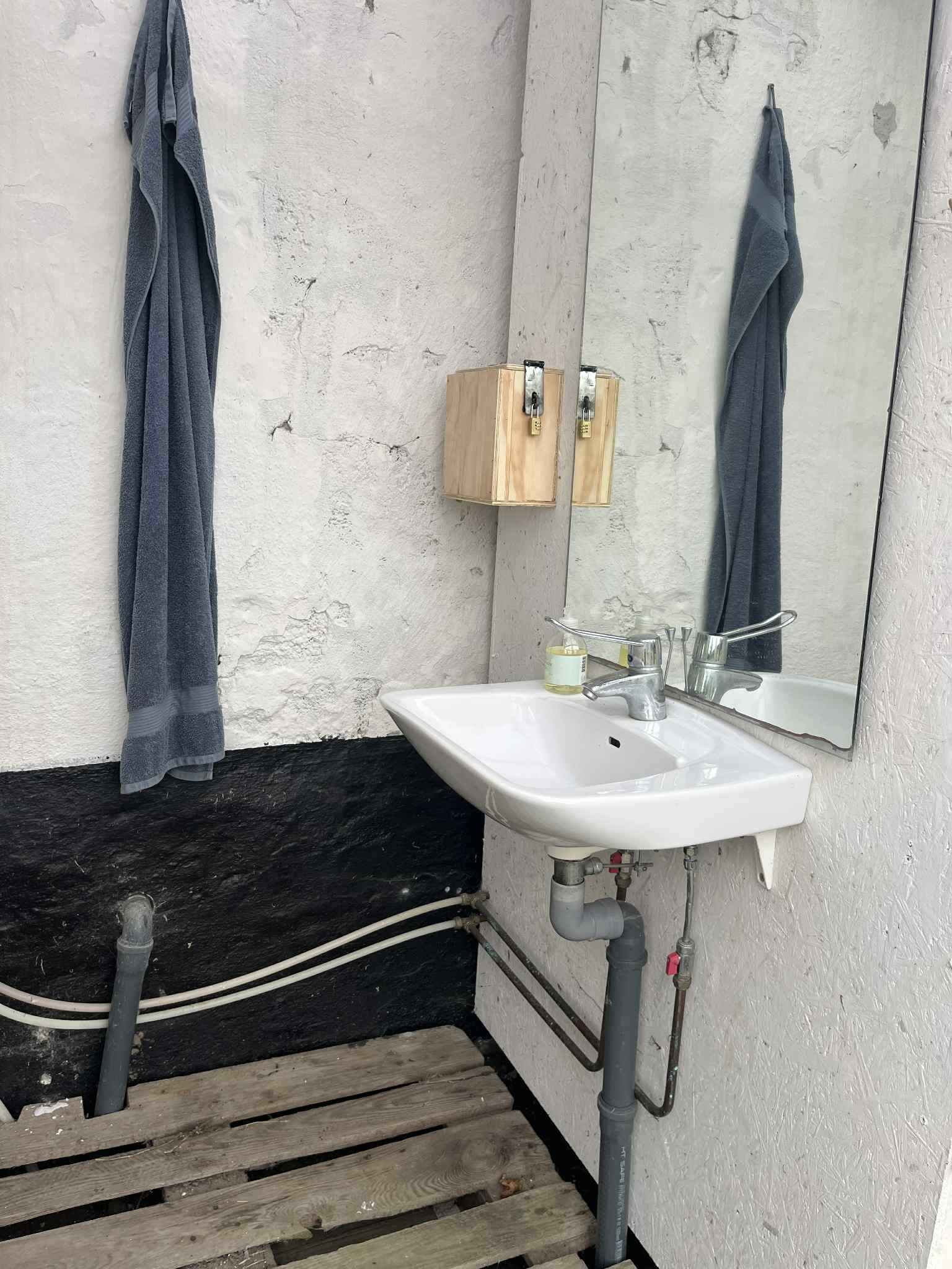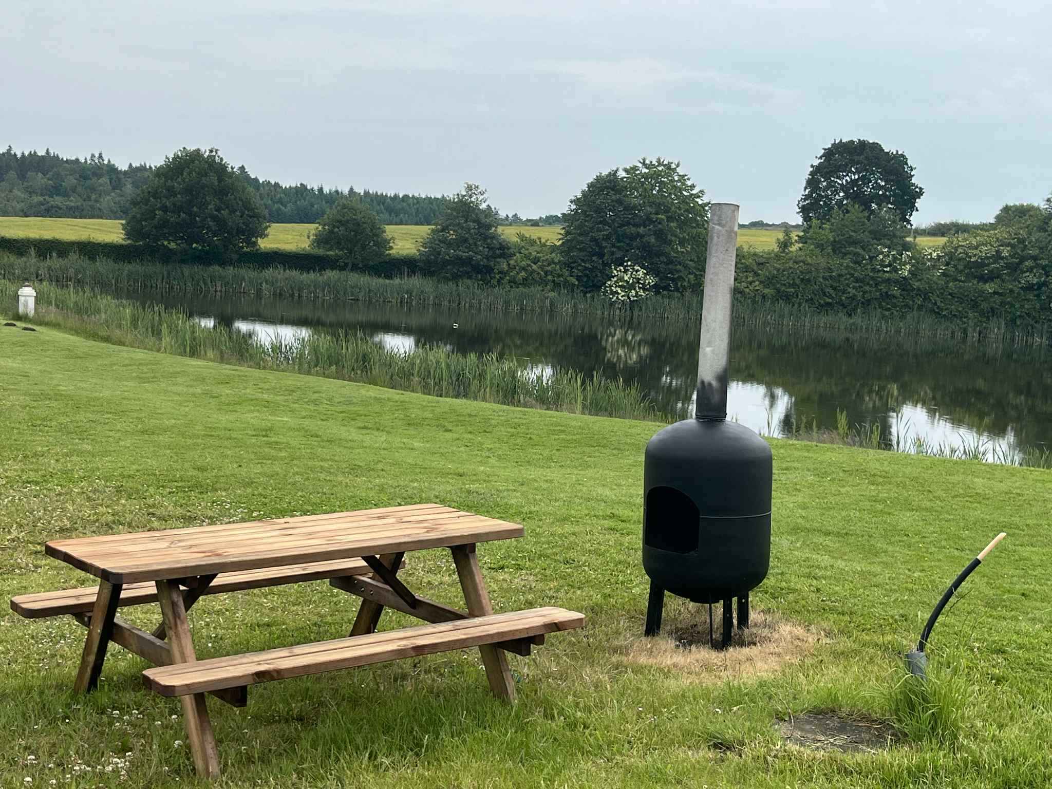 Zugang zu Küche, Toilette und Außendusche gibt es in nahegelegenen Gebäuden. Auch eine Feuerstelle steht bereit – ideal für Abende unter freiem Himmel. Die umliegende Natur lädt zu langsamen Morgenstunden, guten Gesprächen und ungestörter Zeit ein.