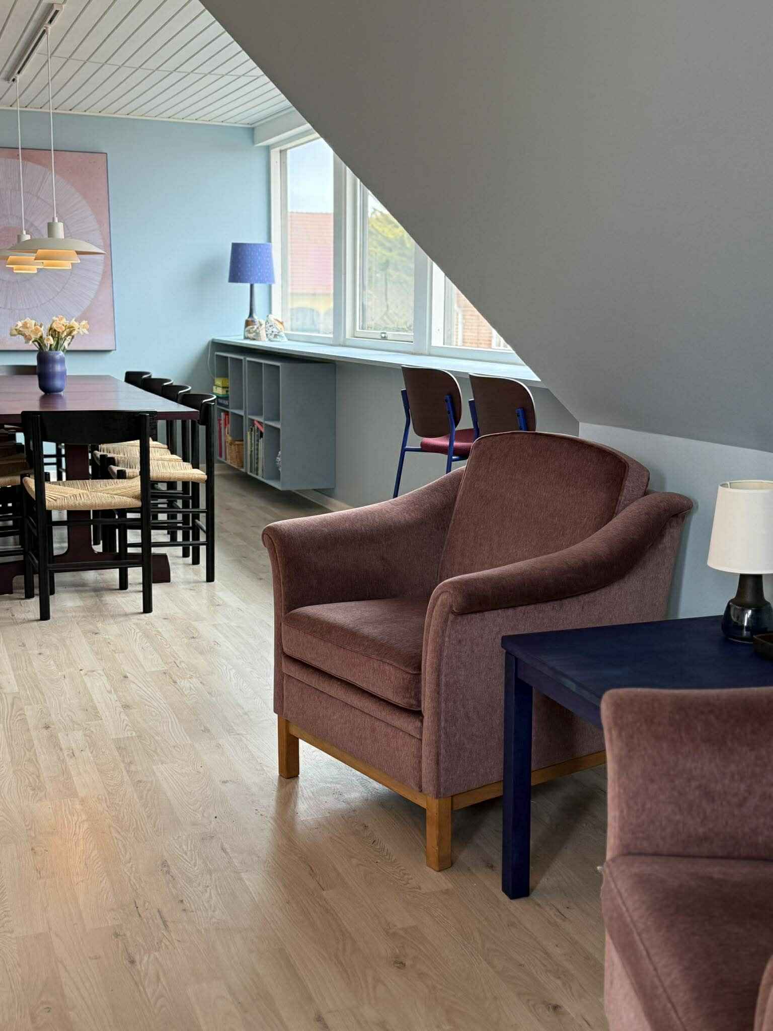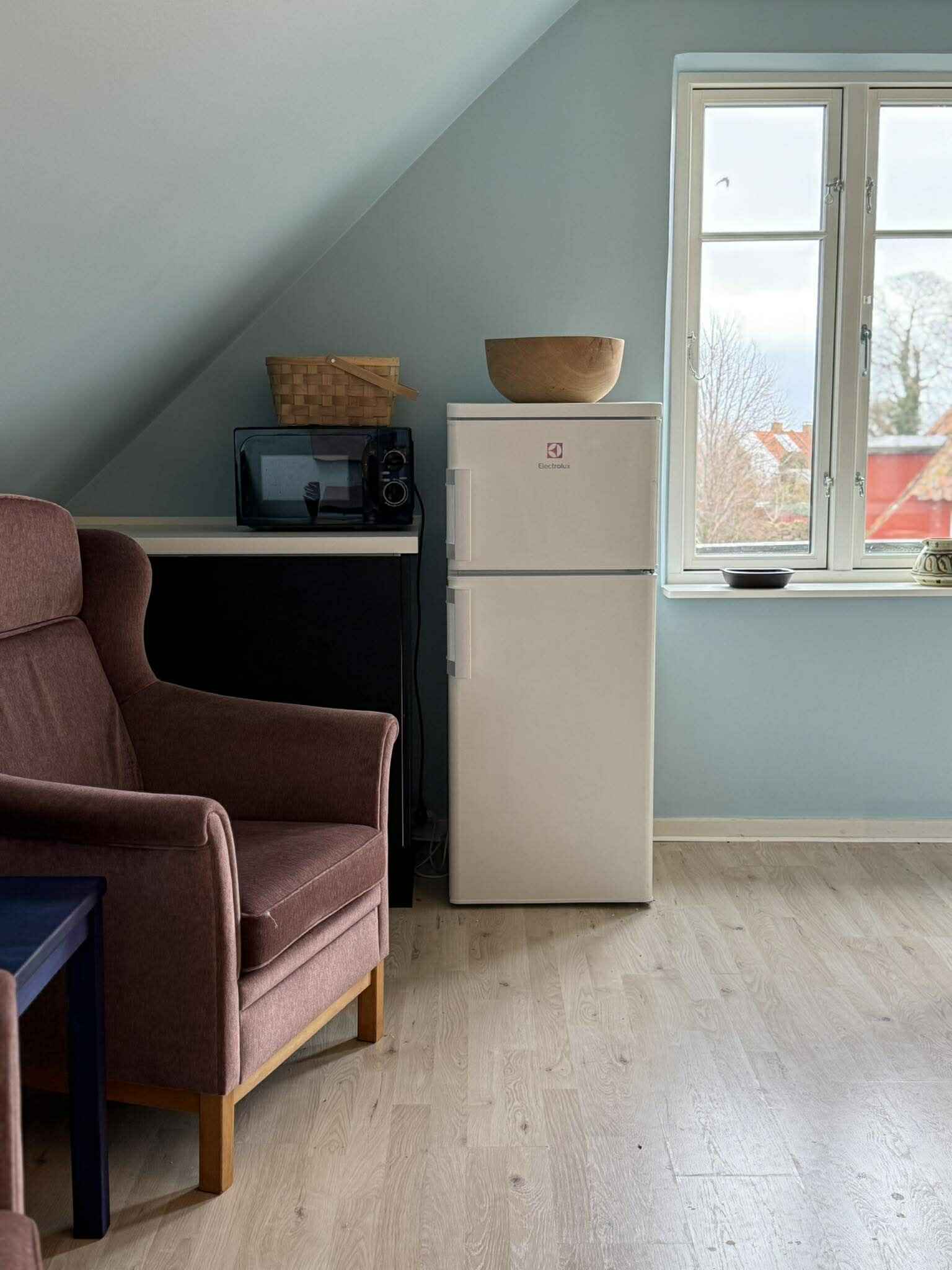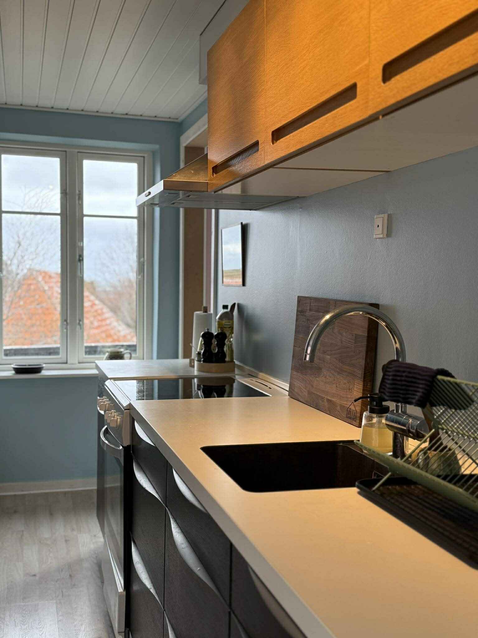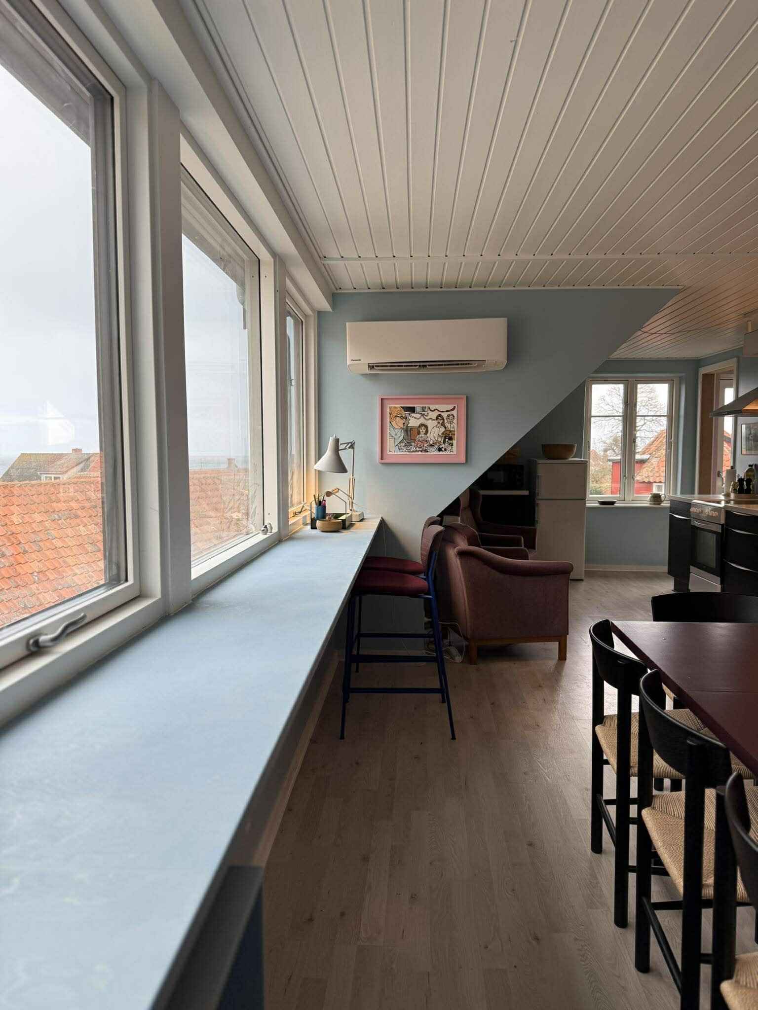 Vom Wohnzimmer aus haben Sie Blick auf das Wasser und Hammerknuden, was der Wohnung das ganze Jahr über ein besonderes Urlaubsgefühl verleiht. Der Balkon mit Essplatz für 6 Personen wird schnell zum natürlichen Treffpunkt für den Morgenkaffee, das Mittagessen in der Sonne oder lange Sommerabende mit Aussicht.