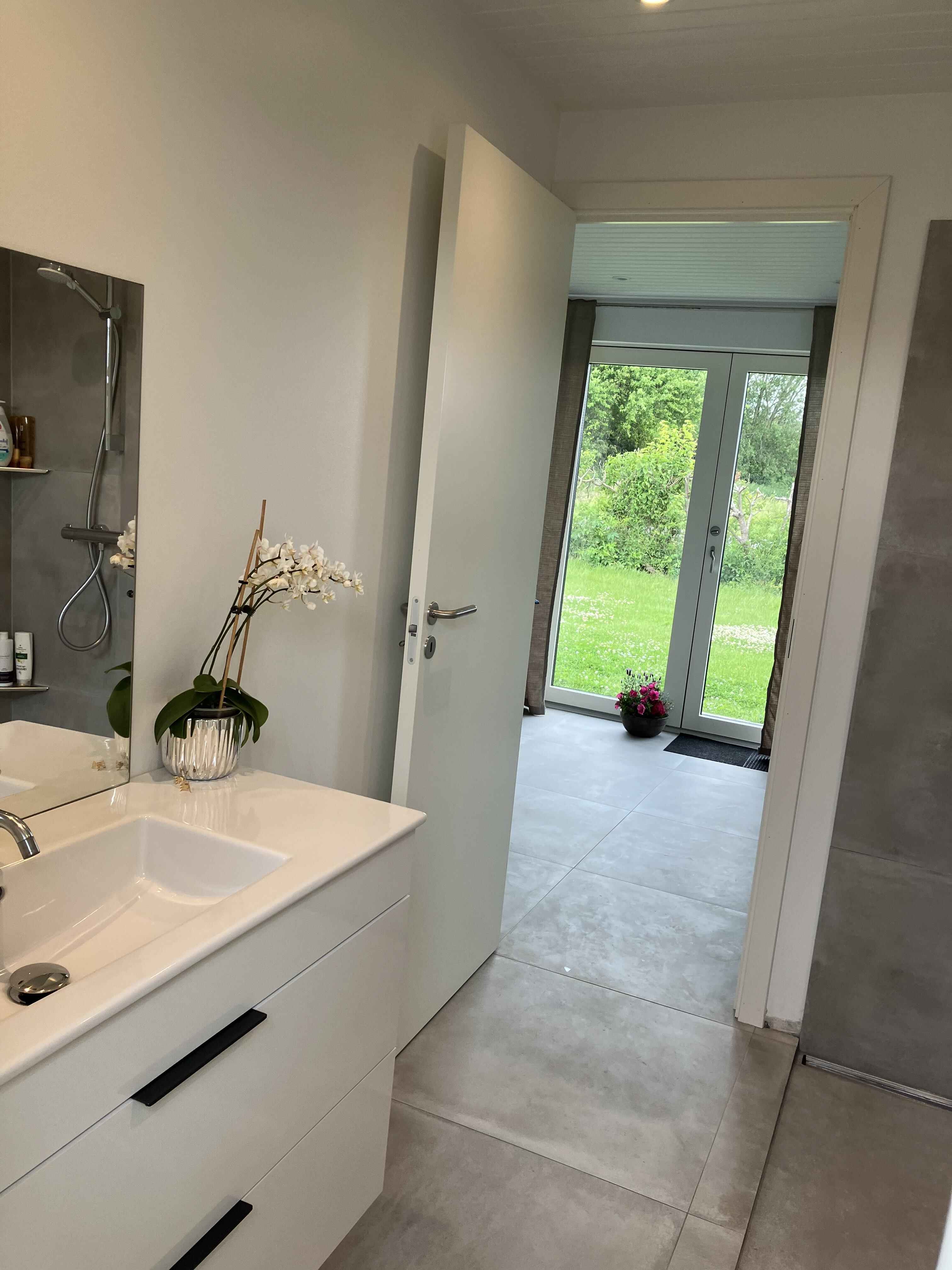 Hier erwartet Sie ein komplett neu renoviertes Haus (2025) mit drei Schlafzimmern und zwei Badezimmer. Das Haus wird mit einer Luft-Wasser-Wärmepumpe beheizt und verfügt über Fußbodenheizung im gesamten Haus, selbstverständlich auch in den beiden schönen und geräumigen Badezimmer.