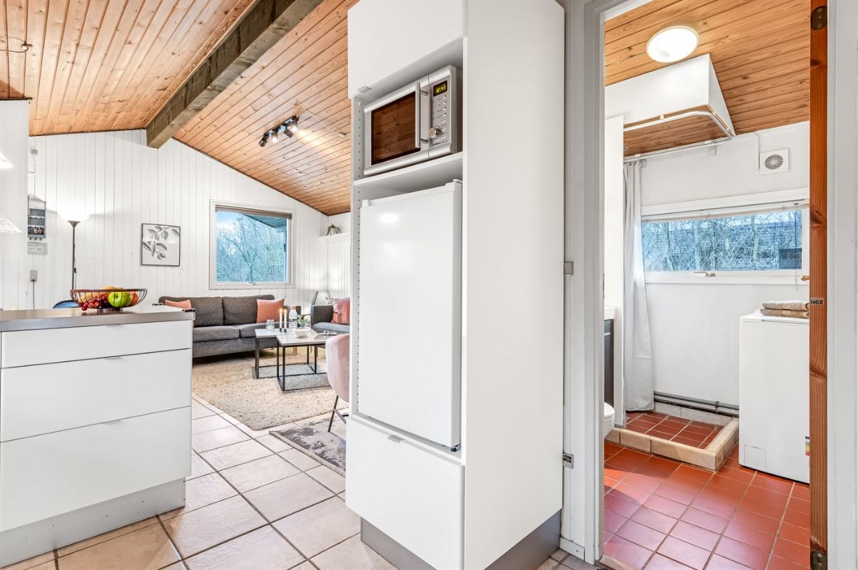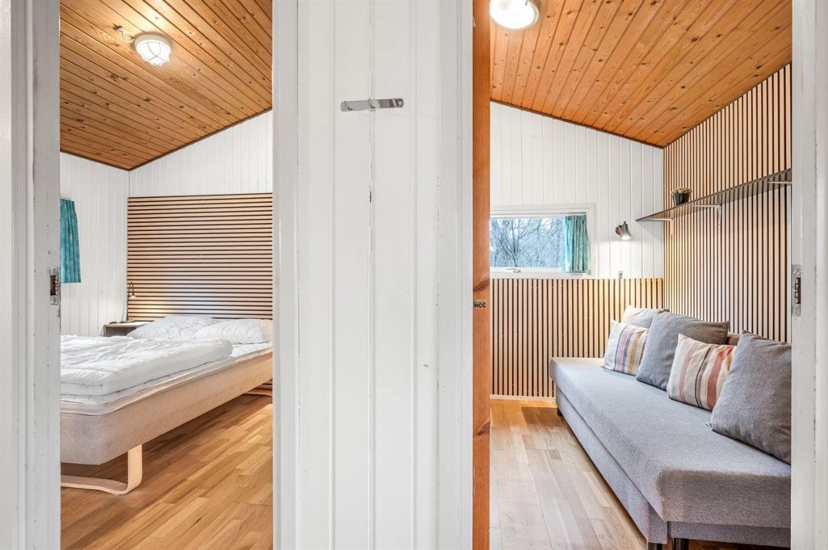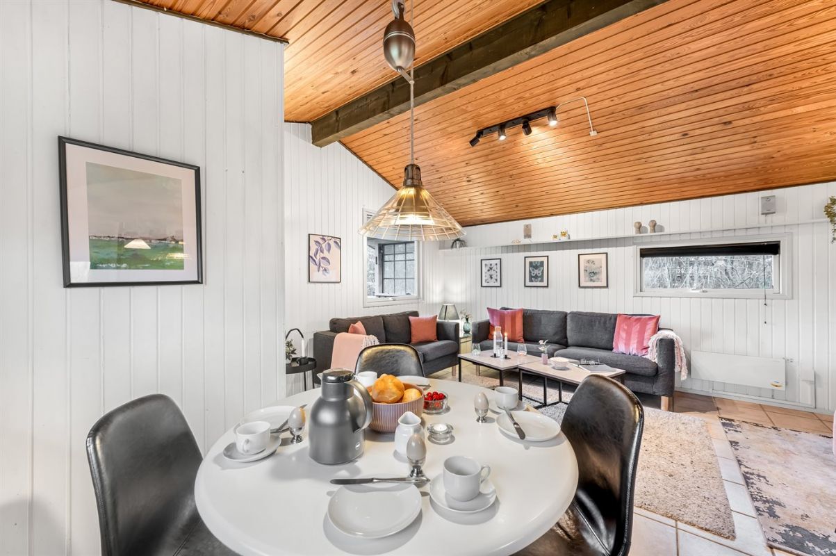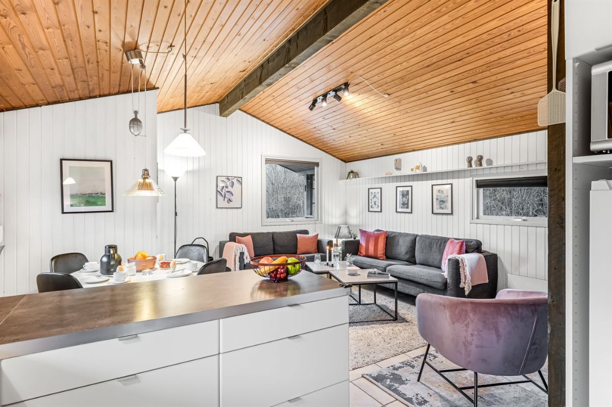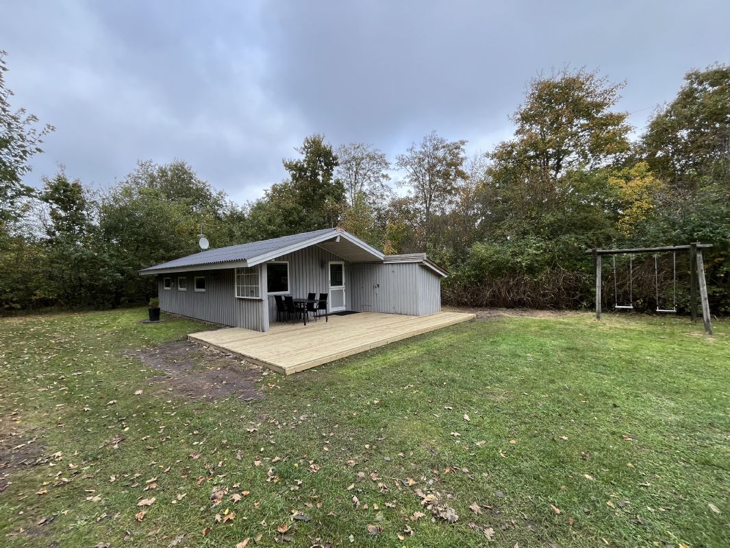 Sehr gemütliches und persönlich eingerichtetes Ferienhaus mit einem Holzofen, Klimaanlage und einer gemütlichen Essecke auf einem großen, geschlossenen und ungestörten Naturgrundstück im Herzen von Jegum Ferieland, und damit 10 Minuten zu Fuß zum Aktivitätszentrum der Gegend. Das Haus ist mit einer hellen Küche / Wohnzimmer mit direktem Zugang zu einer teilweise überdachten, eingezäunten Terrasse ausgestattet.
