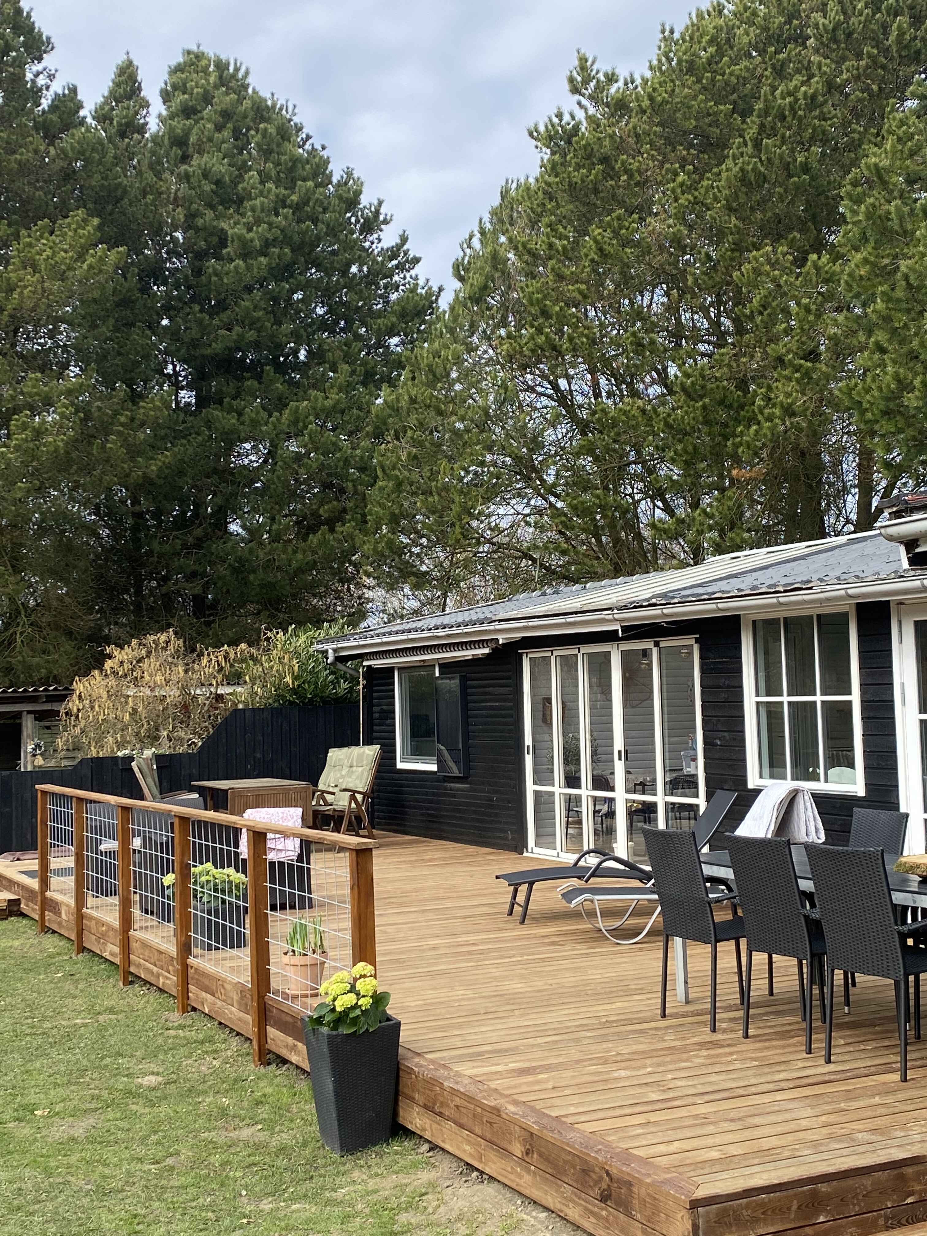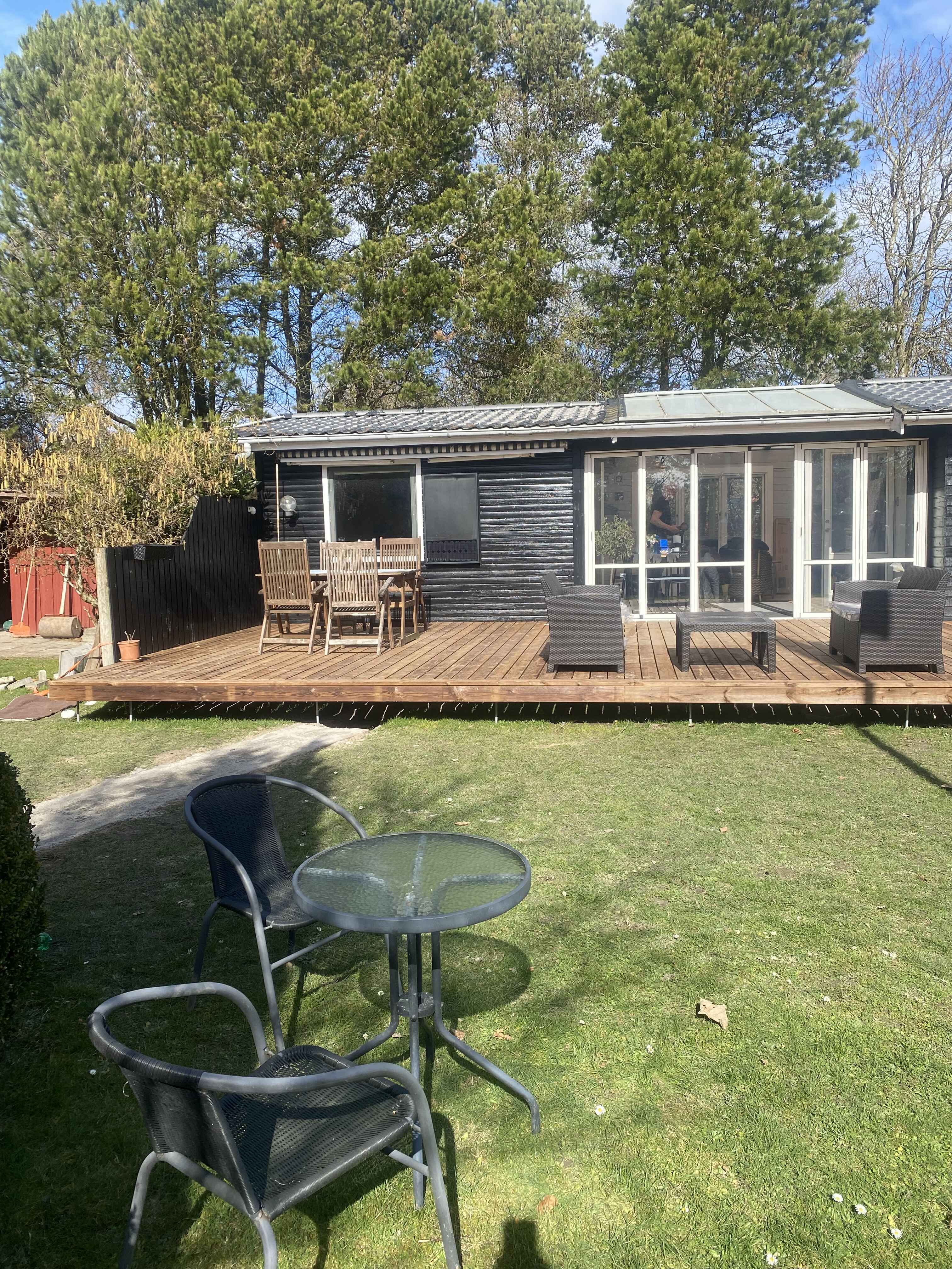 Ein gepflegtes Ferienhaus auf einem von Büschen und Bäumen umgebenen Grundstück gelegen – nicht weit...