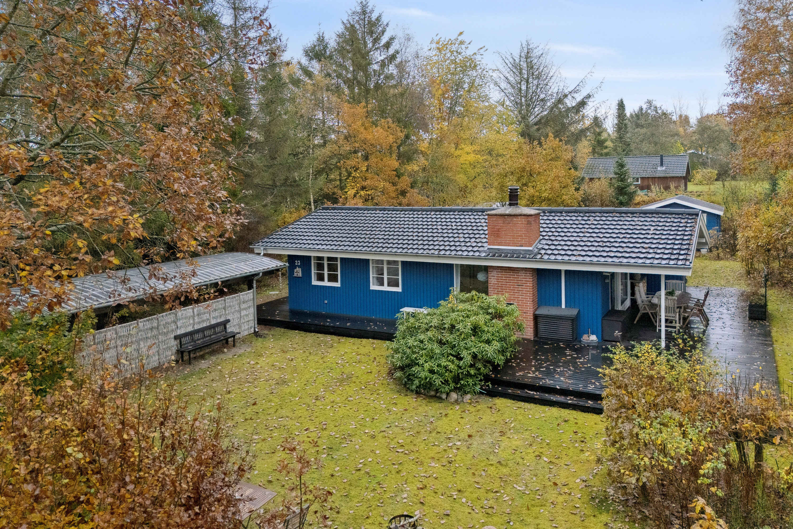 Ferienhaus in besonders reizvoller Umgebung, nicht weit vom Flussufer des Gudenåen.